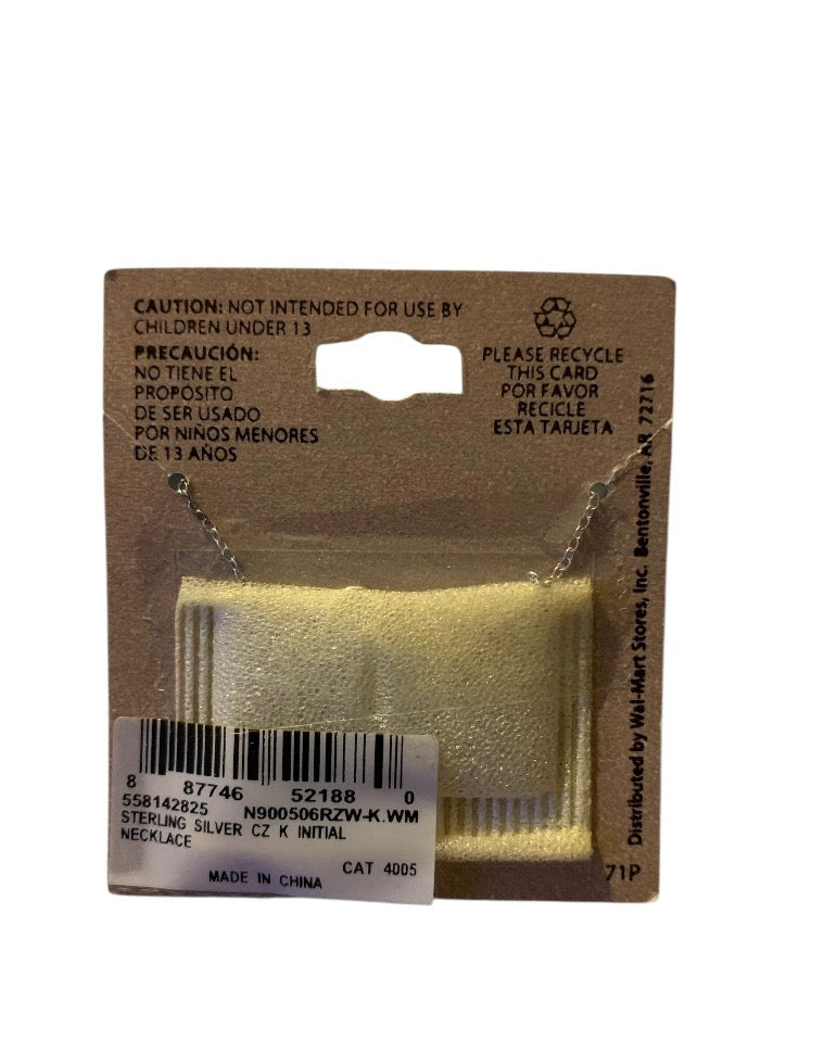 Brilliance Fine Women’s CZ Sterling Silver Block Initial Necklace – 18″ Chain