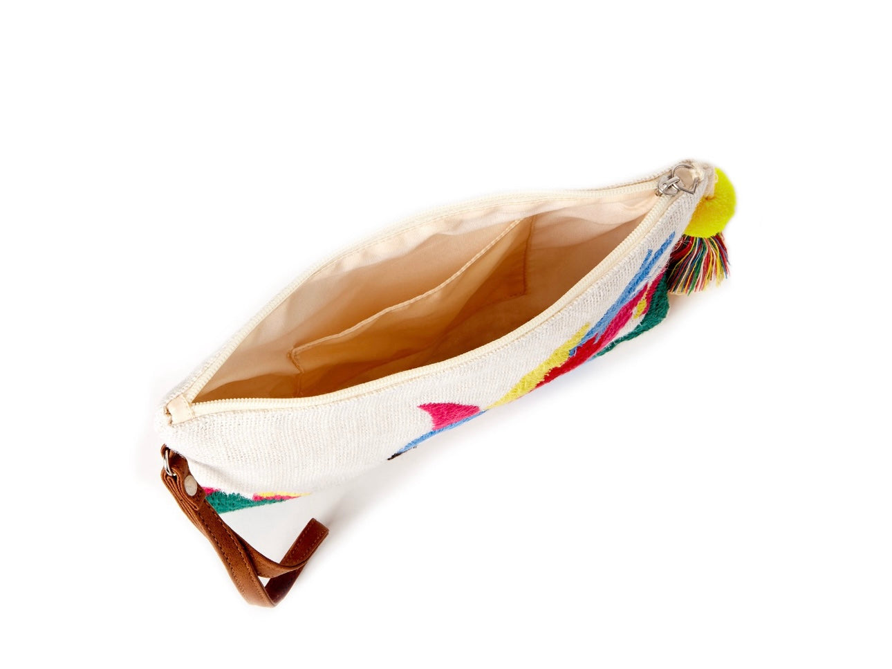 This stylish pouch from Time and Tru features a beautifully stitched bird motif, zip closure with tassel pull, and a carry strap for versatile use. Compact yet roomy enough for essentials like phone, keys, or makeup.